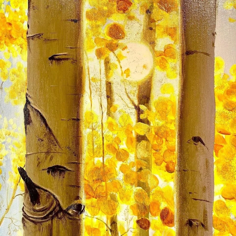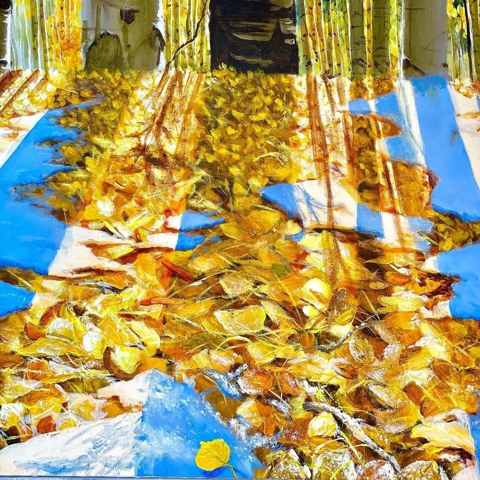 “Dreams or Fall” 60 in x 60 in. Whenever I am trapped in a fall scene I always feel like I am half awake and half dreaming. Anybody else? So much so that I don’t want to leave that place, I want the beauty of that moment to last forever. I think fall time is a time of debriefing. The trees recognize the time that is coming ahead and so they prepare for it. They save their energy by slowing down the process of photosynthesis, turning their leaves to yellow until they finally fall. Many things fall, during Fall time. Leaves fall, trees fall, temperatures fall, snow falls. Nature starts the process of falling asleep. Is not dying, is just resting. It knows it will need to save her energy to endure the cold weather ahead and rebirth during spring time. I wonder why it’s so hard for us to learn true rest. Maybe is because we haven’t learn to surrender. ... I am dreaming of that time of rest! Let Fall time begin.